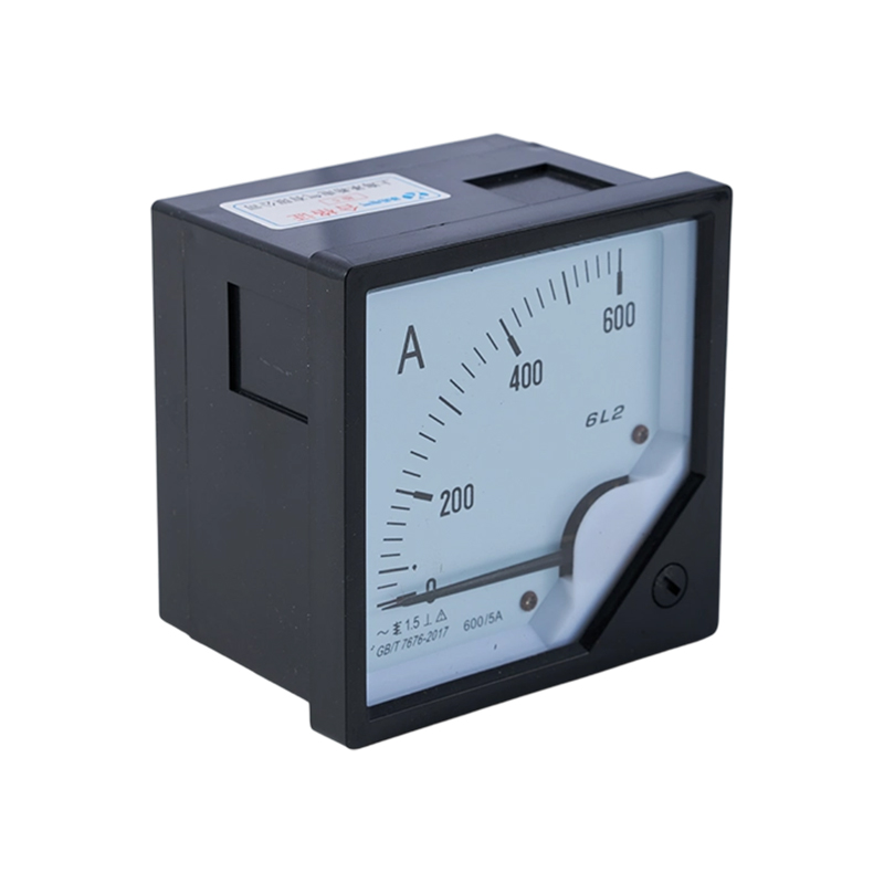Амперметр серии 6L2 на ток 600А предназначен для четкого и надежного измерения тока в системах электрического управления и распределения электроэнергии. Благодаря размерам 80 × 80 мм и размеру выреза в панели 76 × 76 мм его можно легко установить в стандартные панели и распределительные шкафы. Аналоговый циферблат напрямую указывает ток, протекающий через цепь, с помощью точного положения указателя, что позволяет операторам сразу считывать значение. Кроме того, плавное и непрерывное движение указателя интуитивно отражает тенденцию изменения тока, четко показывая направление, скорость и колебания тока во время работы.